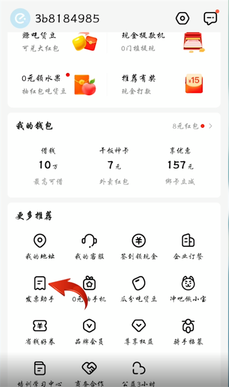 1.想开具配送费发票的话,在主页面中点击我的选项进入个人详细页面,下拉详细页面并点击底部更多推荐栏中的发票助手。
