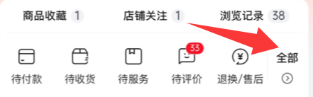 2、然后在【我的】页面,找到【订单】这一栏,选择【全部】。