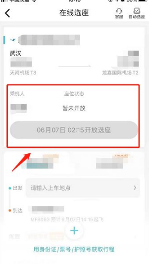 等待在线选座开放后,在在线选座功能中即可进行网上值机。