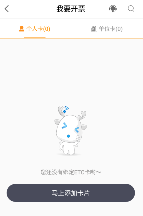 注册成功后开始绑定ETC卡。选择我要开票→马上添加卡片→根据提示填写相关信息,完成5个步骤后就会提示绑卡成功。