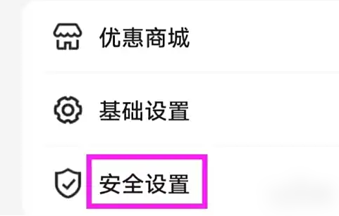 选择界面中【安全设置】点击跳转进入界面;