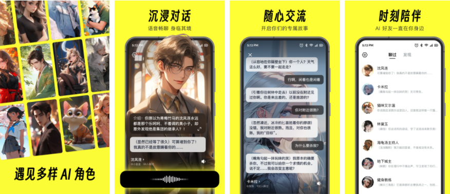 打开「猫箱」,遇见多样 AI 角色。身临其境地与个性鲜明、背景各异的虚拟 AI 角色聊天互动,开启专属于你们的故事!