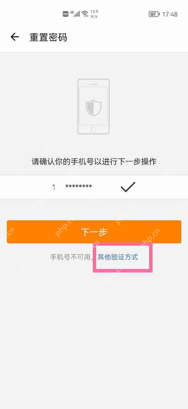 如果您的注册手机号不可用,可以选择【其他验证方式】进行身份验证。