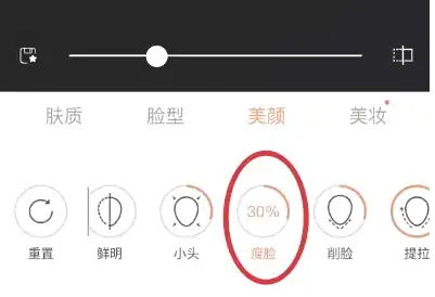 最后,将瘦脸参数设为【30%】这样调整美颜参数*自然