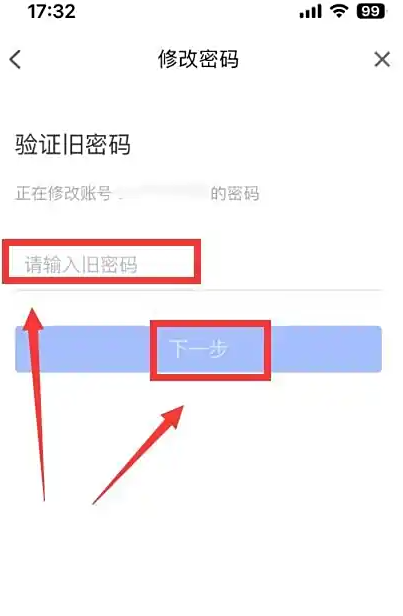 进入修改密码,输入旧密码,点击“下一步”。