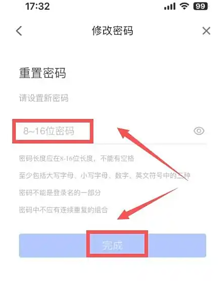 进入修改密码,输入新密码,点击“完成”。
