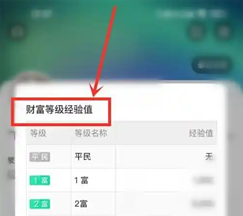 进入财富等级详情页,即可查看财富等级表。