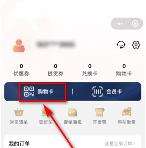 想要绑定购物卡,进入到【我的】页面后点击【购物卡】功能。