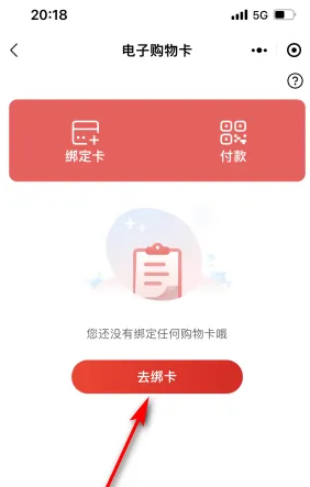 这时会弹出【电子购物卡】页面,点击页面中的【去绑卡】功能。