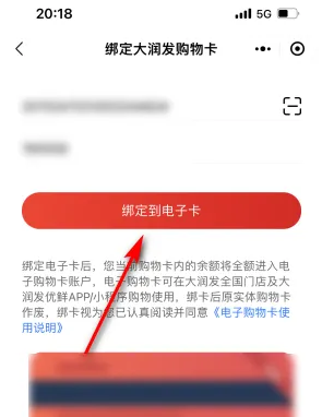 进入到【绑定大润发购物卡】页面后输入卡号和卡密,点击【绑定到电子卡】功能。
