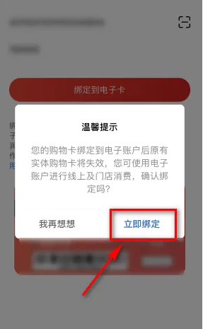 点击弹出对话框中的【立即绑定】功能,这样就能成功绑定购物卡了。