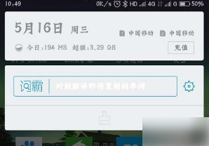 你再次拉下手机【状态栏】就会看到【金山词霸翻译框】中自动翻译后的中文。