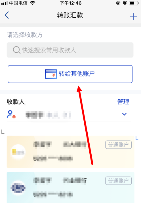 进入 转账汇款 的页面后,点击 转给其他账户 。