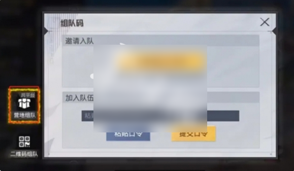 2、除此之外,还可以通过在游戏中的“组队码”界面,选取“营地组队”给营地好友发送邀请,从而实现跨平台好友组队。