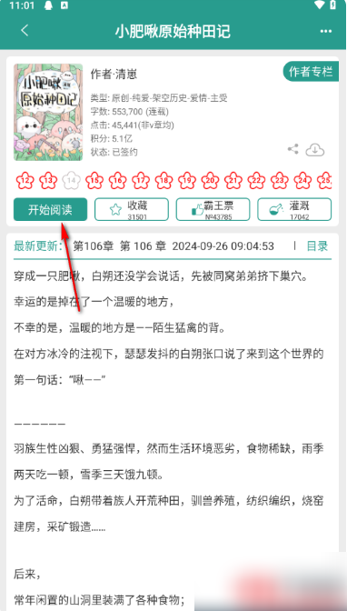 2.那么这时候我们可以看到页面上显示的是该书籍的相关介绍信息,我们将【开始阅读】选项点击一下进入。