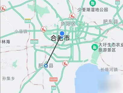 4、设置起点终点,即可测距离成功。