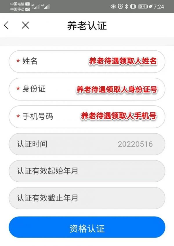 点击主页养老待遇资格认证