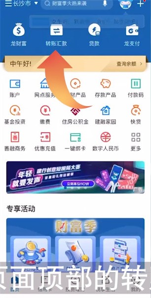1、打开中国建设银行app,点击页面顶部的转账汇款;