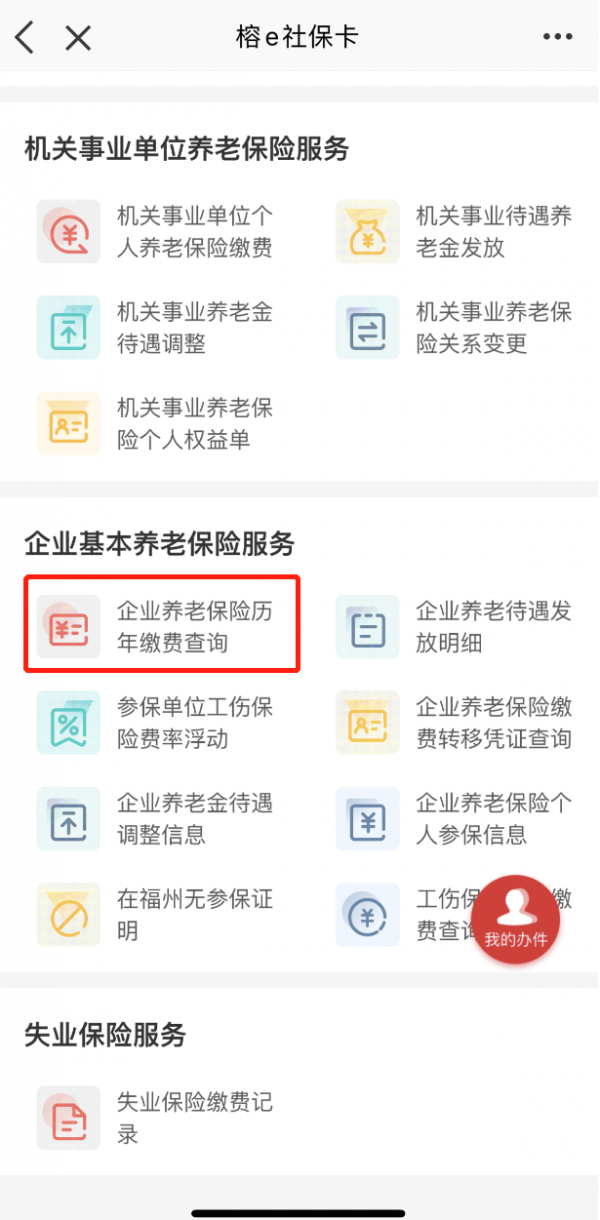 选择【企业养老保险历年缴费查询】即可进入查询入口,查询相关信息