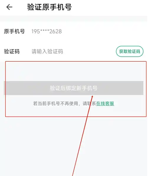 在跳转的新界面中输入原手机号和验证码后,点击“验证后绑定新手机号”