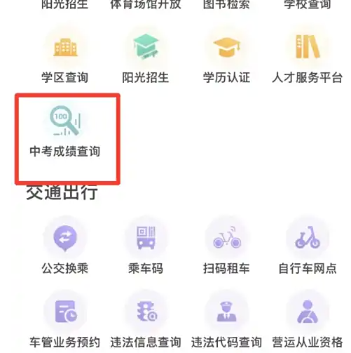 第三步:最后在文体教育下面点击【中考成绩查询】即可。