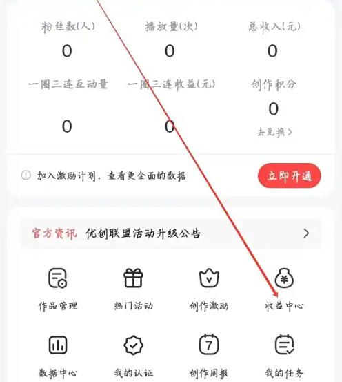 点击【收益中心】选项,我们就可以进行了。