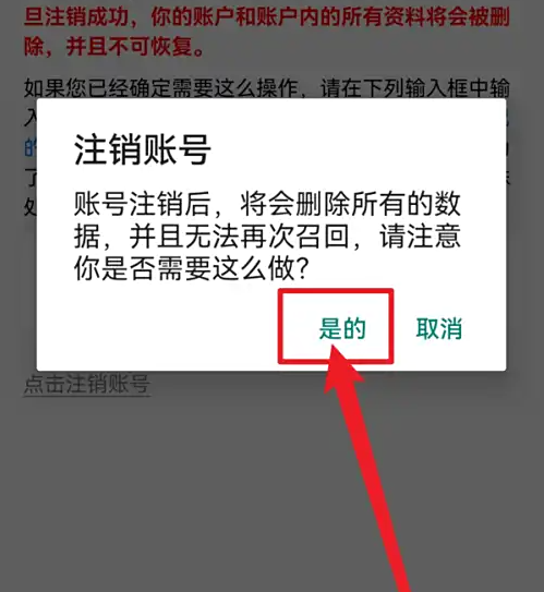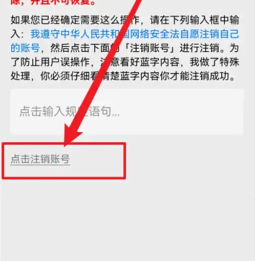 第三步:进入注销账号界面,阅读温馨说明,点击【点击注销账号】。