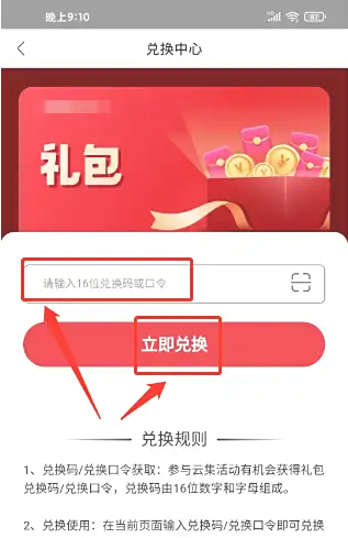 步骤三;进入兑换中心,输入兑换码或口令,点击(立即兑换)选项。