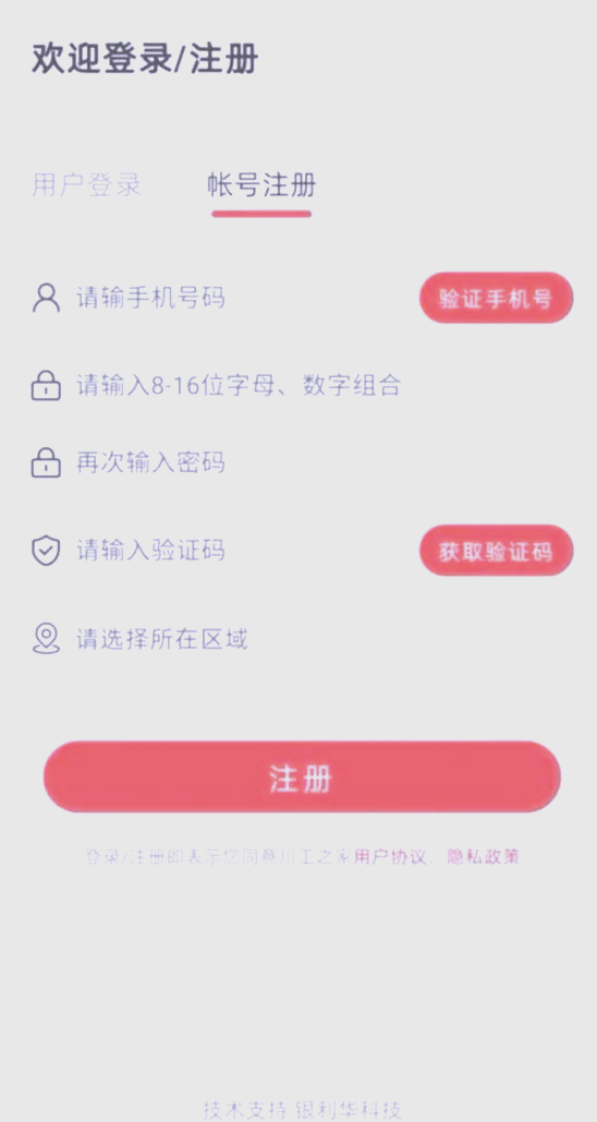 打开川工之家app后,您将看到“账号注册”的选项,请点击该选项开始注册流程。
