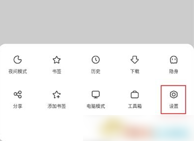 2、点击后在弹出的功能栏中,找到【设置】选项并点击;