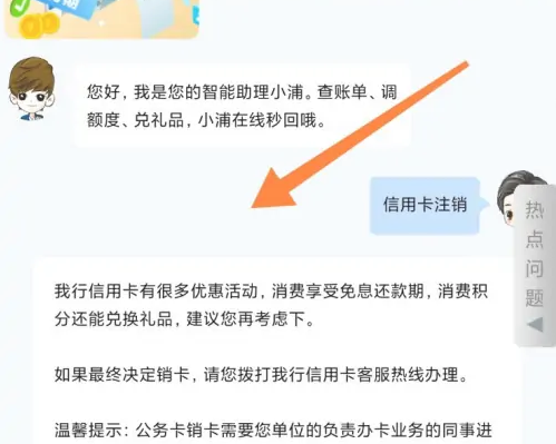 点击在线客服,如下图,发送信用卡注销,看到客服的回复就知道怎么办理信用卡注销了