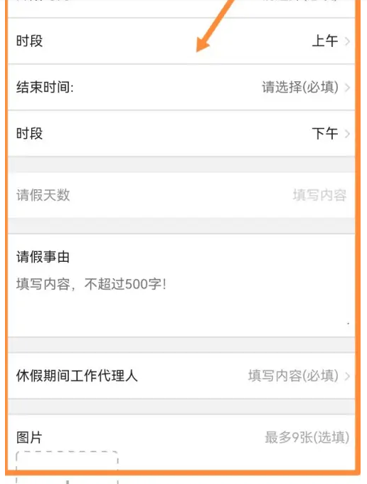 填写请假时间,天数,事由登内容,点击提交即可,如下图所示: