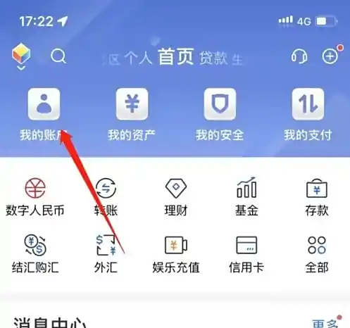第一步:打开交通银行app,在首页进入我的账户
