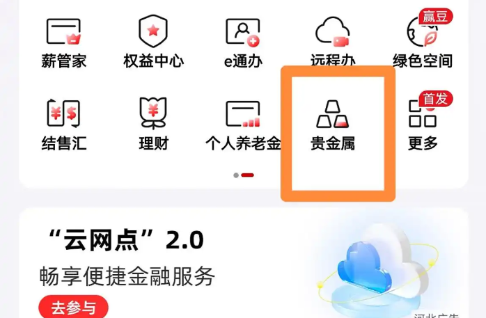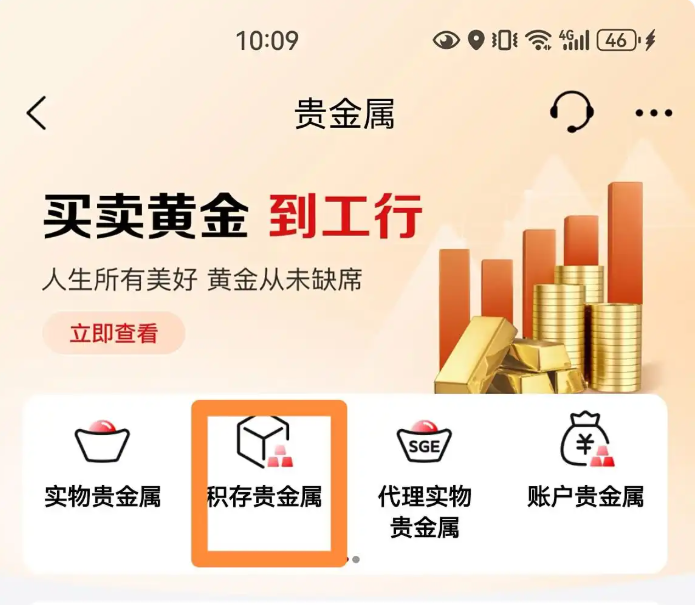 工商银行手机银行怎么买黄金 工商银行手机银行买黄金方法 作者:大头 时间:2025-10-16 02:05:09 来源:快云科技网 1.手机上下载工商银行APP,打开 2.点开贵金属 3.点开积存贵金属 4.点开如意金积存 本站所有文章、数据、图片均来自互联网,一切版权均归源网站或源作者所有。 如果侵犯了你的权益请来信告知我们删除。 上一篇:交通银行app扫码支付怎么用 交通银行扫码支付开通方法 下一篇:vivo浏览器私密空间怎么打开 vivo浏览器进入隐私空间方法介绍
