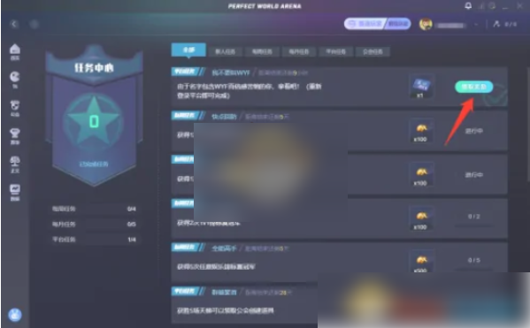 打开并登录完美平台并登录账号,在主页底部找到任务大厅,点击进入,点击新弹出页面中的领取奖励图标,然后你就可以获得改名卡。