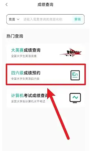 进入成绩查询页面,点击【四六级成绩预约】进入