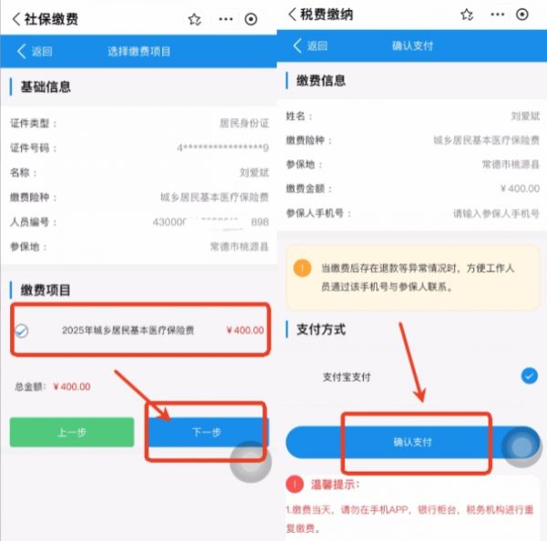 在“湘易办”APP或“湘易办”支付宝、微信小程序的“社保缴费”专区选择对应缴费类型,填写参保人员信息,选择医疗保险缴费险种,并选择2026年缴费年度,即可点击“下一步”完成在线支付流程。