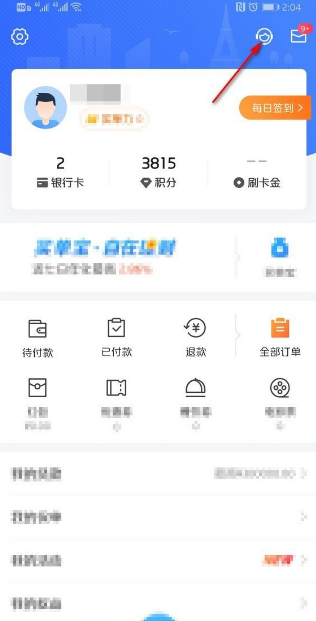 登录进入交通银行信用卡后,点击页面右上角的人像图标。