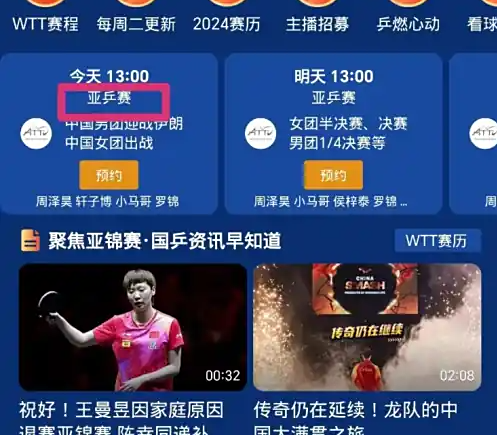 最后点击页面上的【亚乒赛】进入即可观看直播