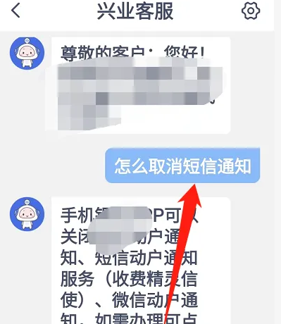 在兴业客服页面,发送“怎么取消短信通知汽欧”。