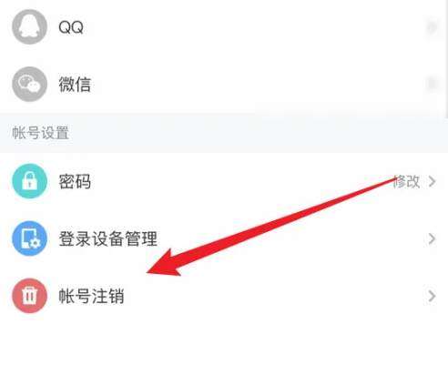 找到“帐号注销“,点击它。