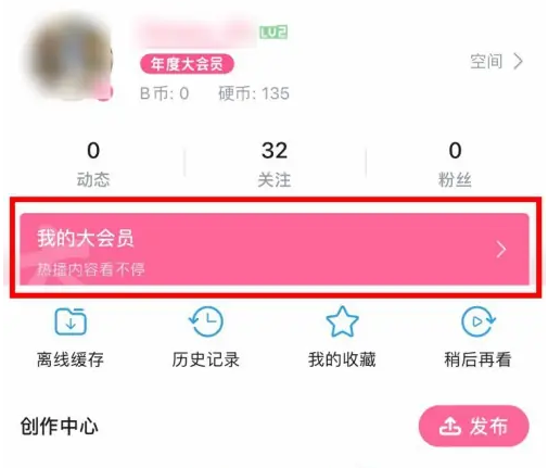 在手机上打开哔哩哔哩,点击个人中心的“大会员”。