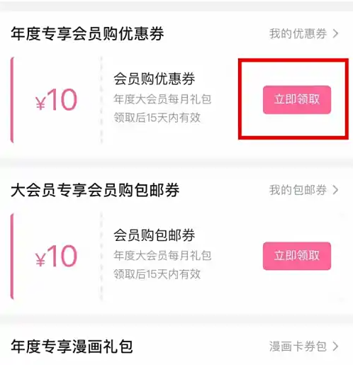 在打开的页面中找到“优惠券”,点击“立即领取”即可。