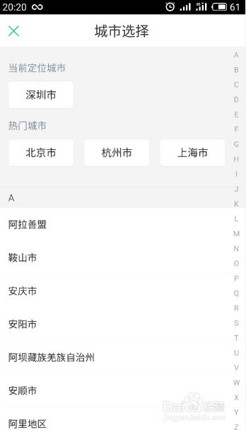 然后选择你所在的城市