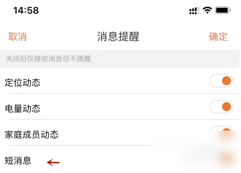 在消息提醒中,点击短消息即可开启。