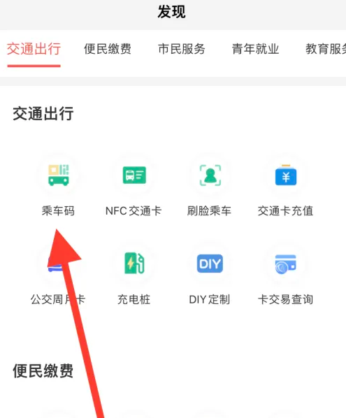 最后:选择界面中的【乘车码】图标,即可完成操作。