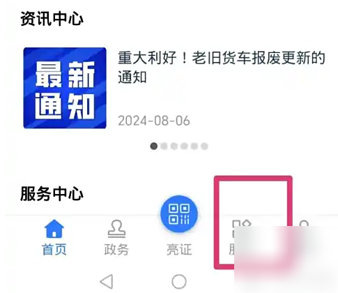 第一步:打开运证通APP,点击页面上的【服务】