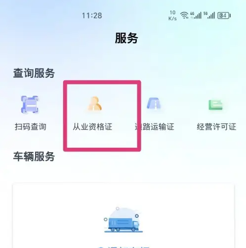 第二步:在服务页面,点击【从业资格证】