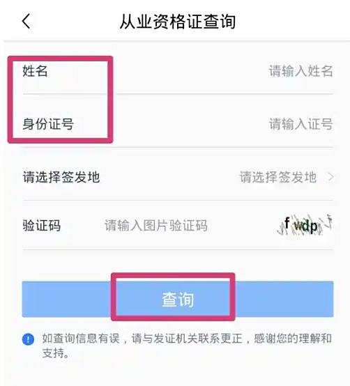 第三步:输入姓名和身份证号,点击【查询】即可