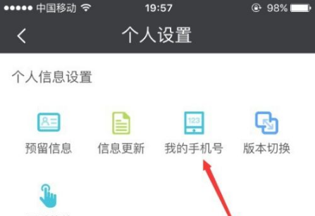 进入设置功能之后,选择个人信息设置中的“我的手机号”,如图所示。